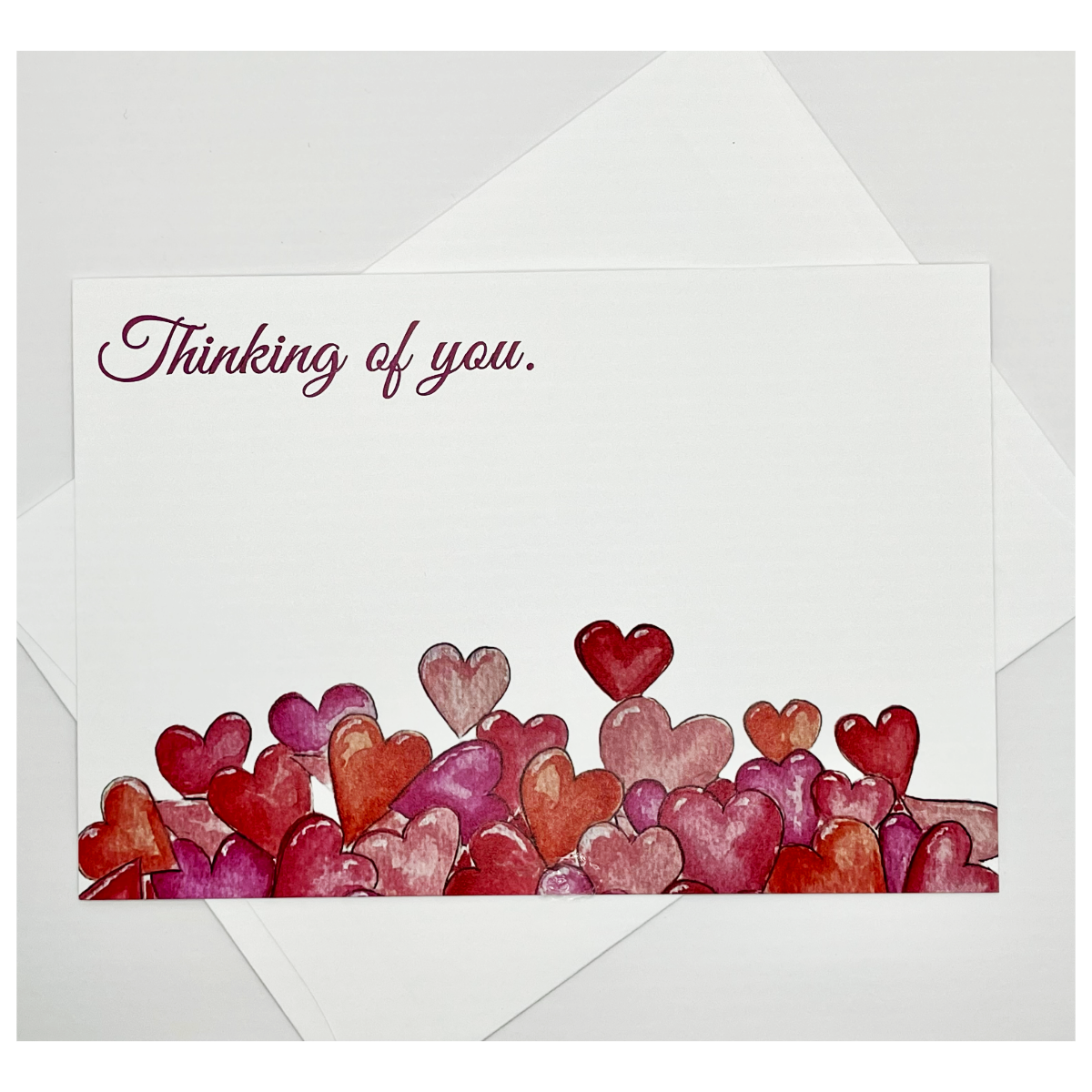 Flat Note Cards with Cascading Hearts | Set of 8 Cards & Envelopes
