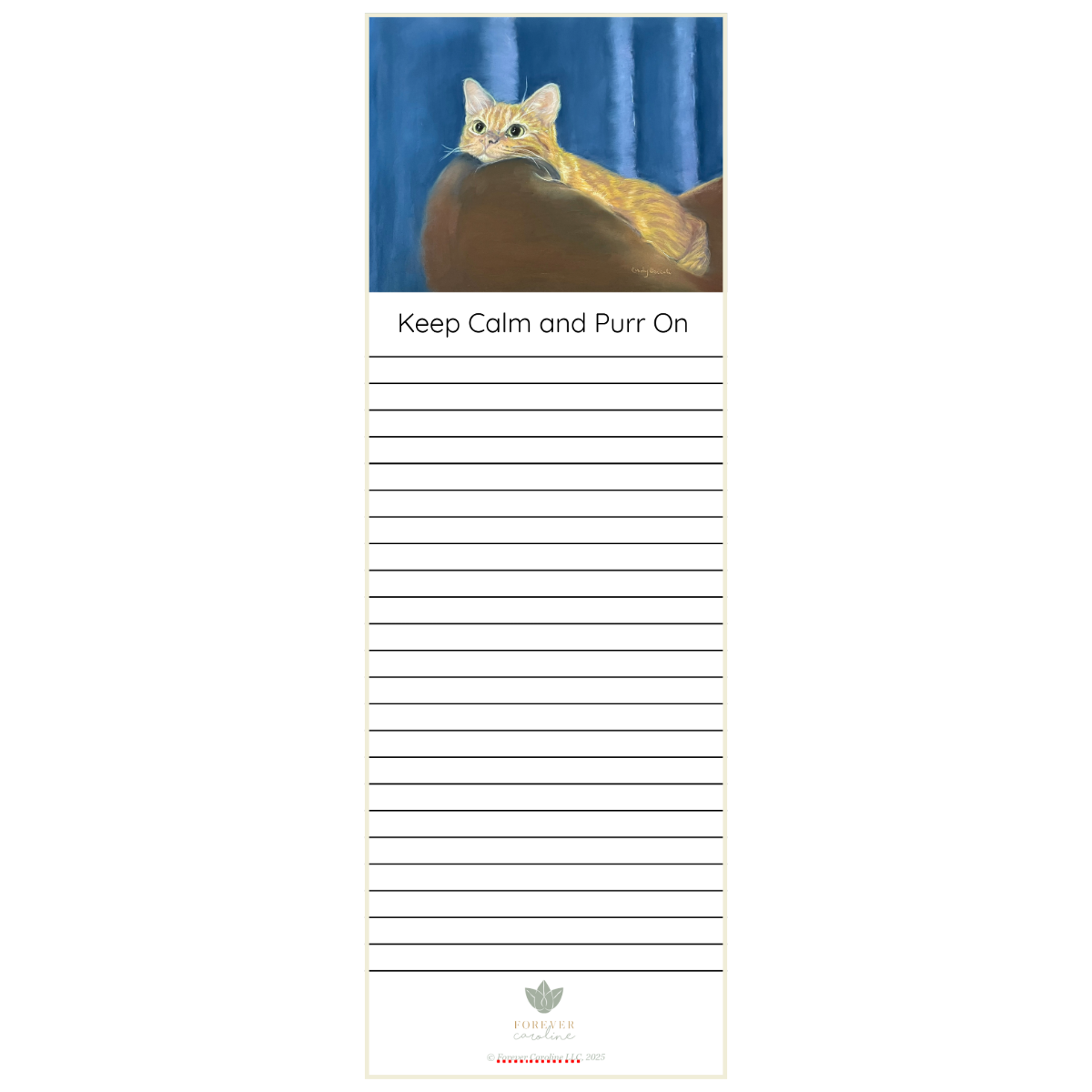 Magnetic Notepad w/ Orange Cat Art and "Keep Calm and Purr On" Message