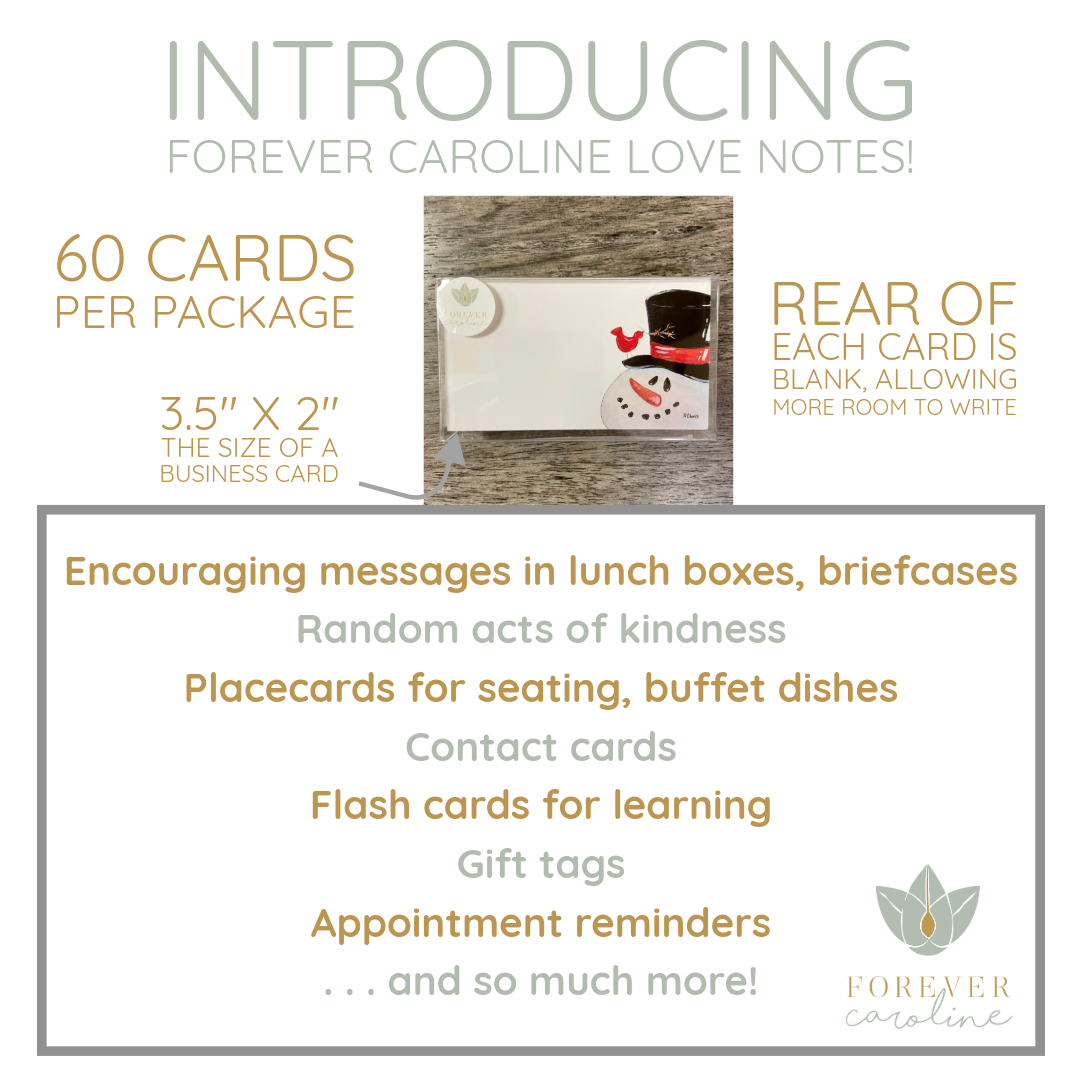 Whimsical Snowman & Red Bird "Love Notes" Pack of 60 Tiny Cards