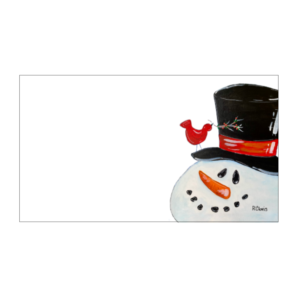 Spread winter cheer with these beautifully illustrated miniature cards featuring a whimsical snowman in a top hat accompanied by a tiny red bird friend. Whether you're tucking them into gifts, using them as holiday place cards, or writing short notes of appreciation, these tiny cards will add a magical touch to all your Winter and holiday activities.