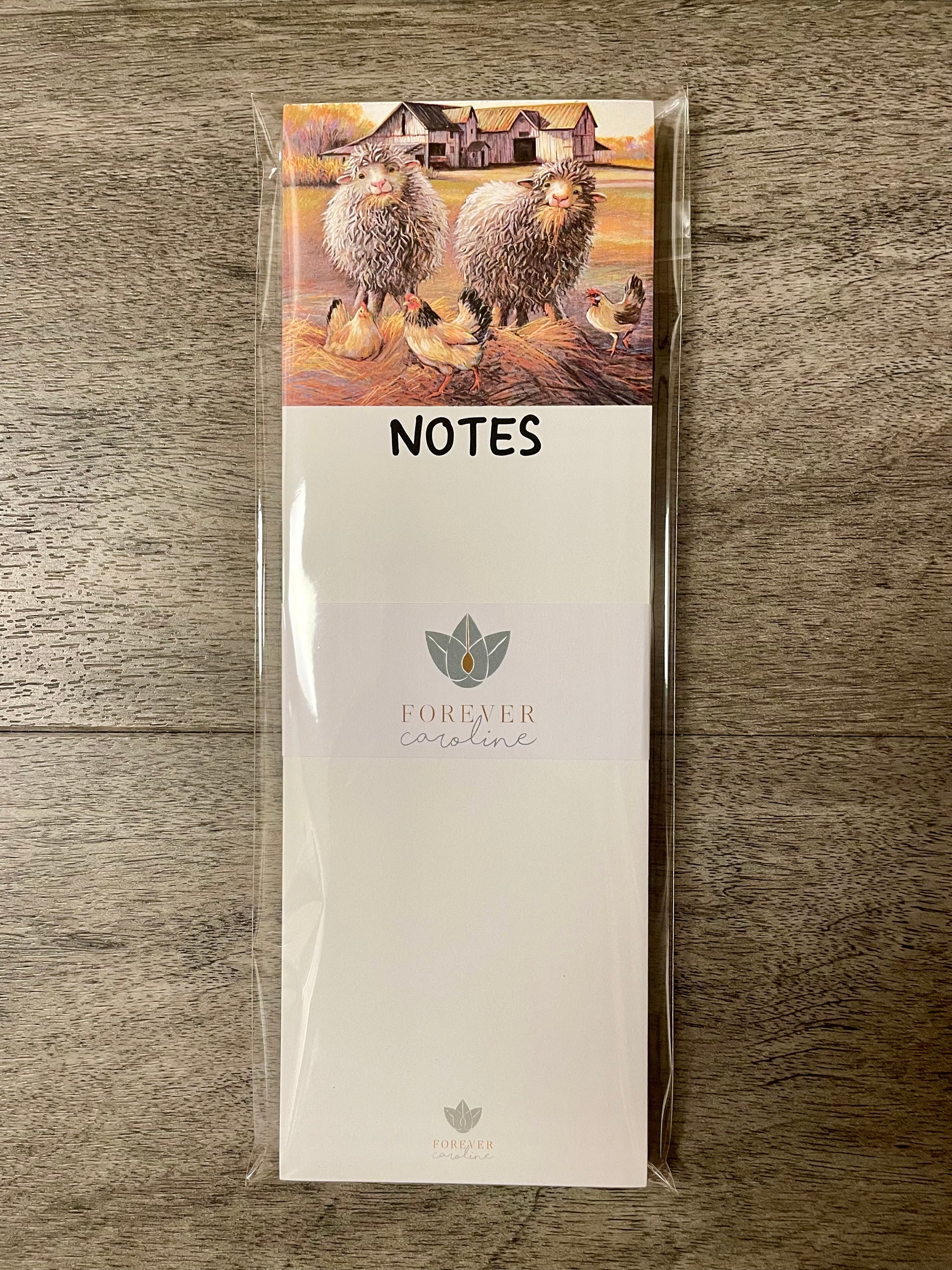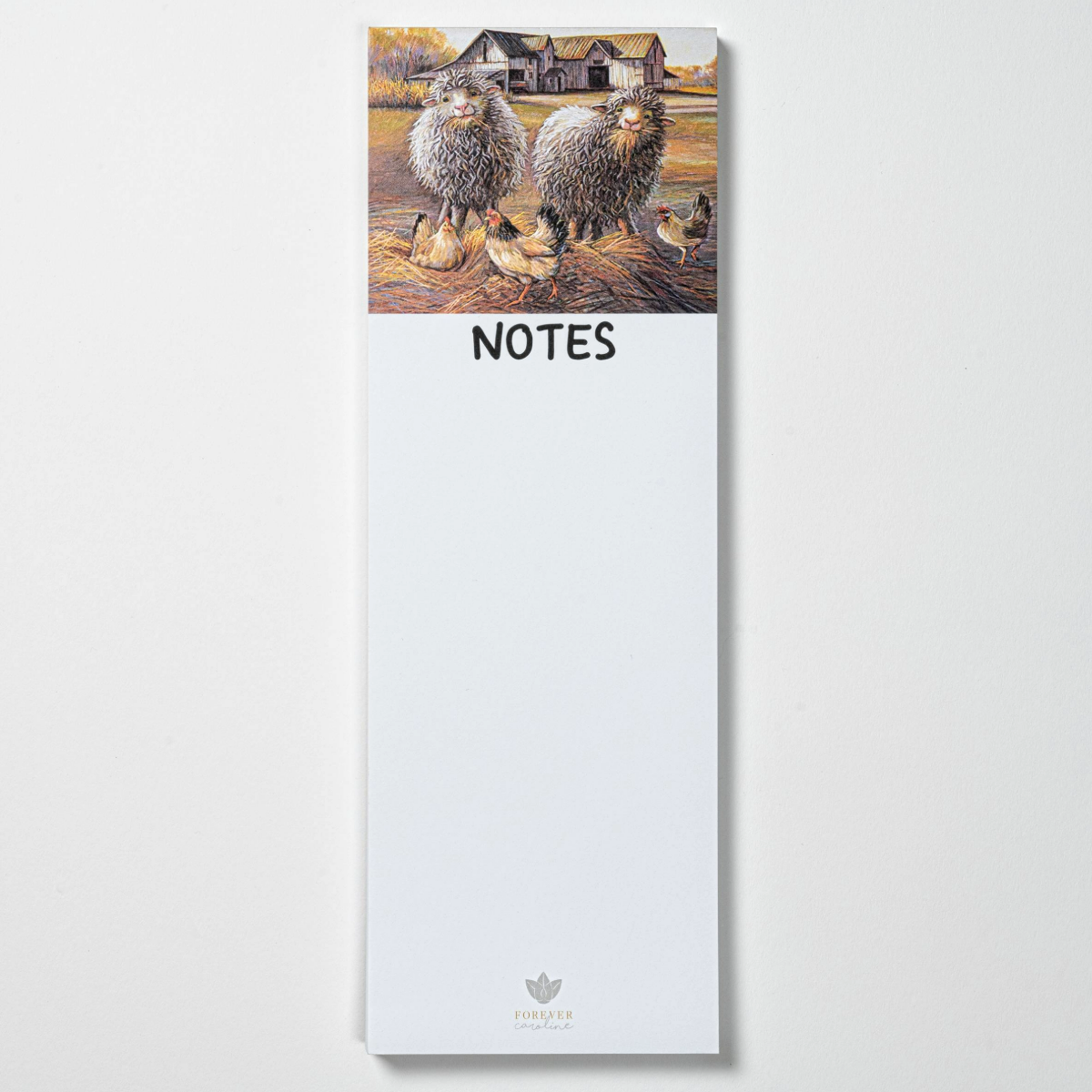 Magnetic Notepad w/ Sheep & Hens Barnyard Artwork | Cute Sheep Memo Pad