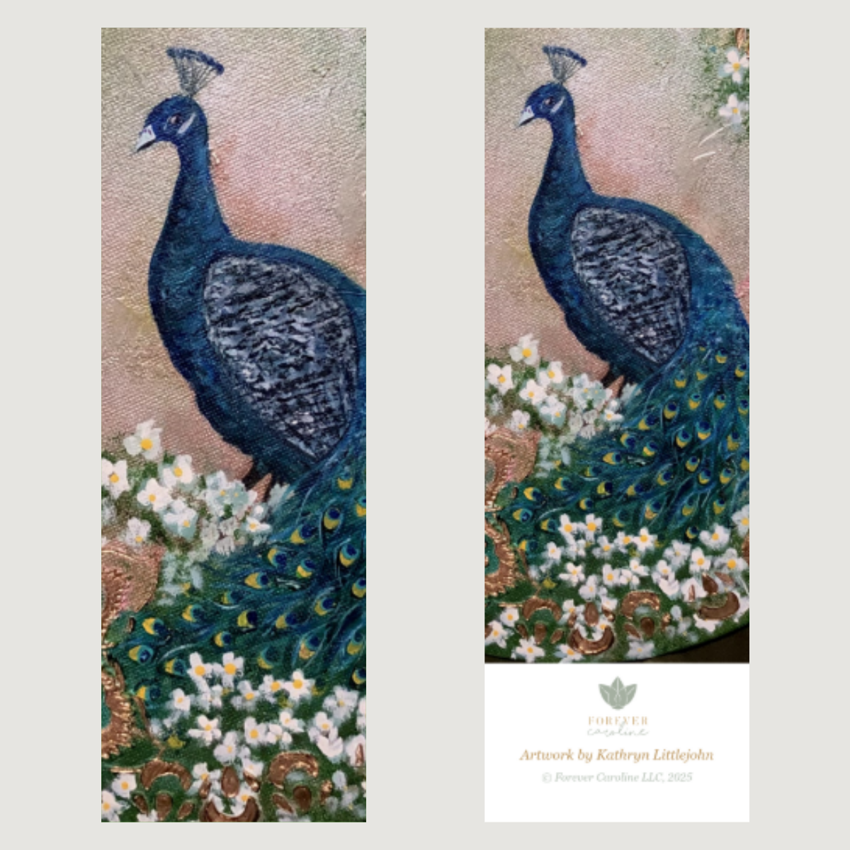Bring a touch of grace and beauty to your reading ritual with this exquisite double-sided bookmark featuring an elegant, hand-painted peacock design. Rich in color and detail, this bookmark is perfect for those who appreciate fine art, nature’s elegance, and the quiet joy of a good book.