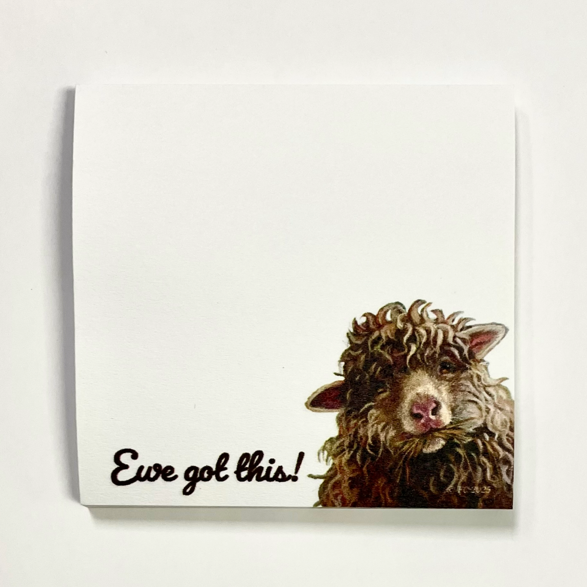 Sticky Notes w/ Fluffy Sheep Painting and "Ewe Got This" | 50 Sheets