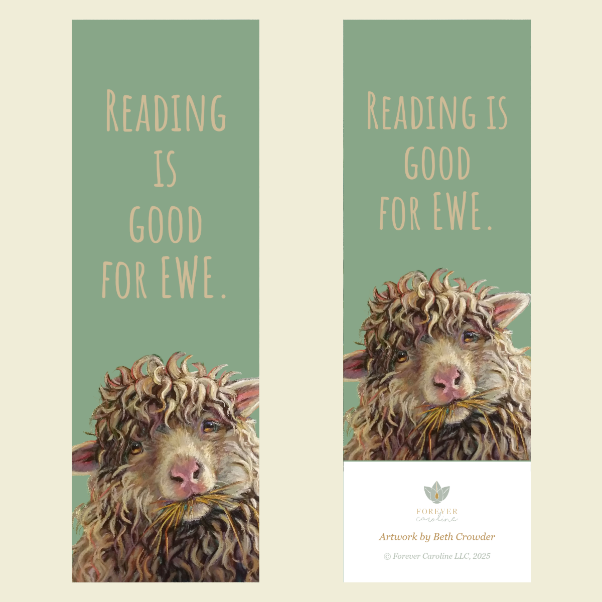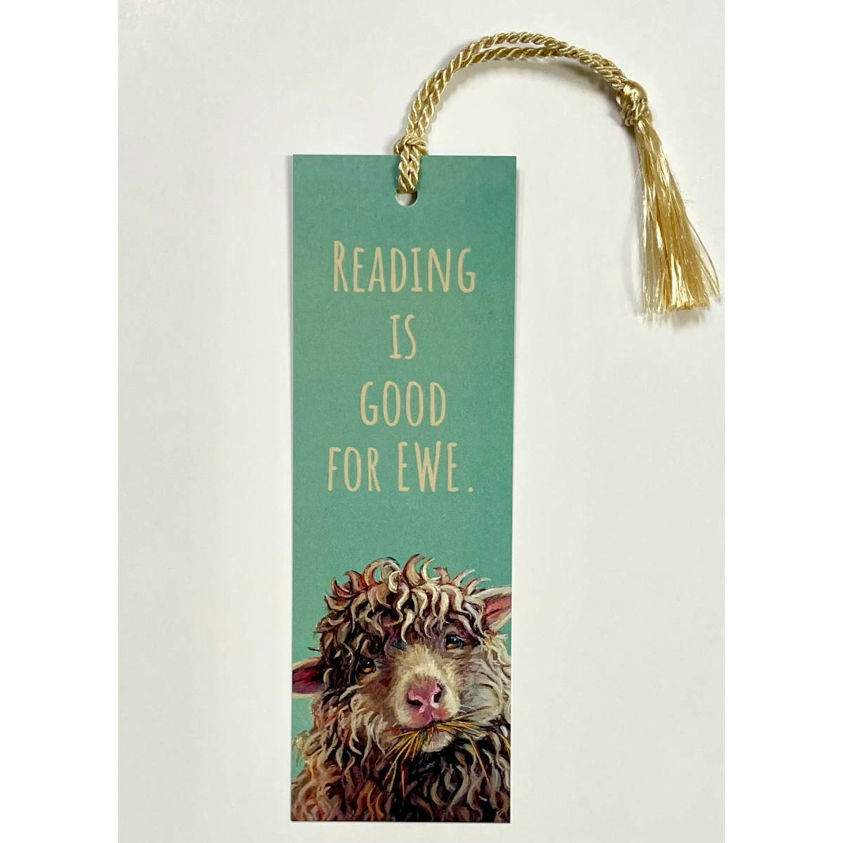 Bookmark w/ Fluffy Sheep Artwork and "Reading is Good for Ewe" Message