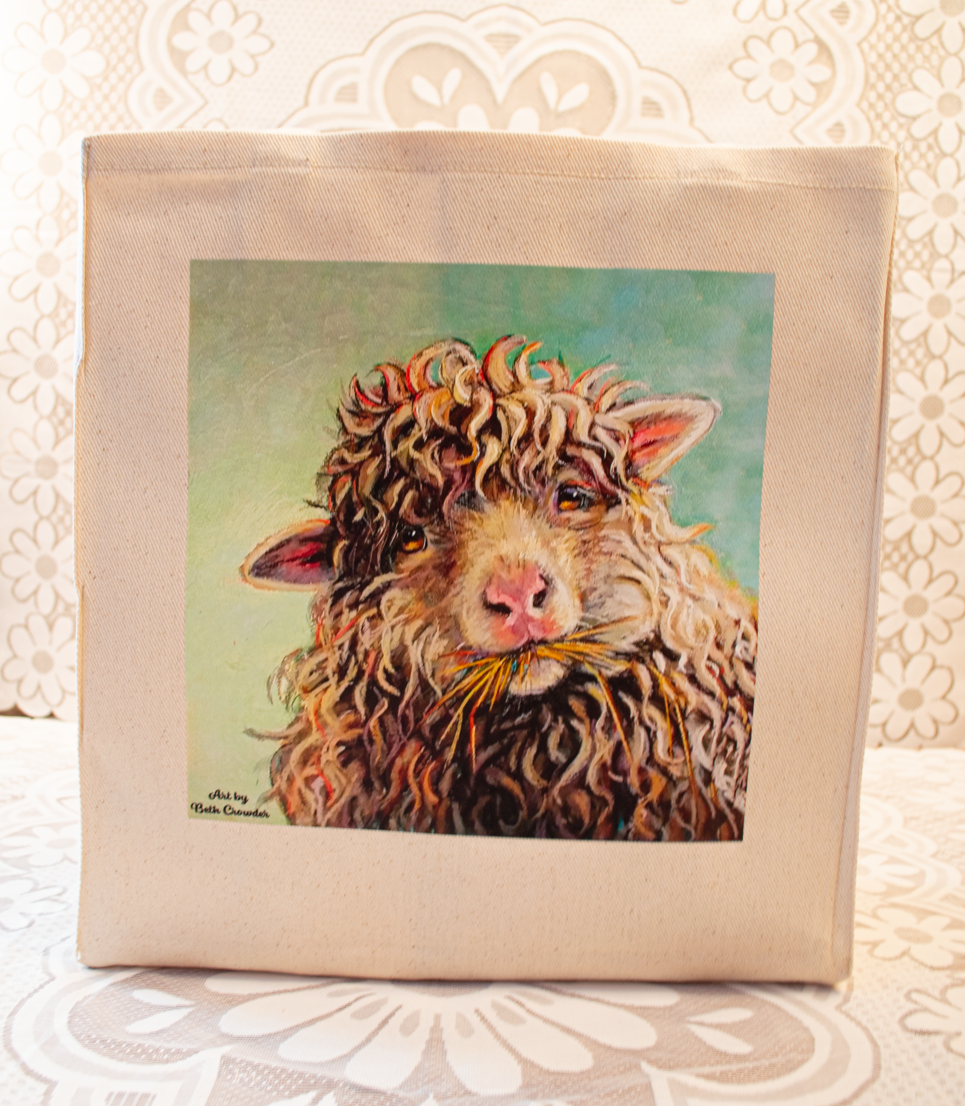 100% Cotton Tote Bag Featuring the Work of Award-Winning Sheep Artist Beth Crowder.