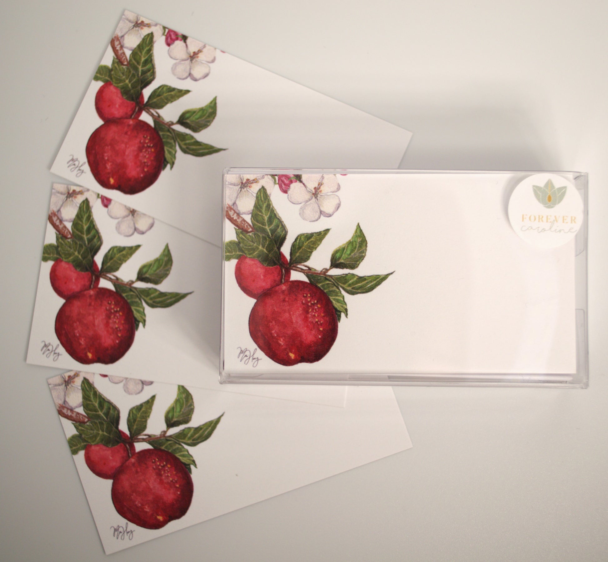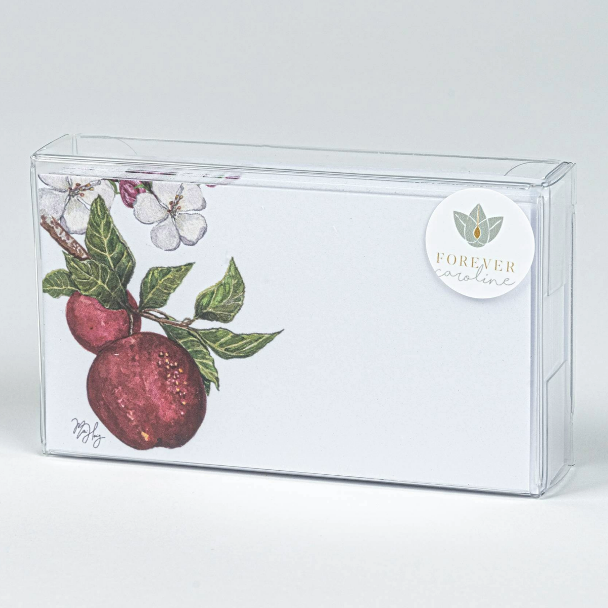 Bring charm and personality to every message with this pack of 60 tiny cards featuring a delicate painting of a Winesap Apple. Whether you're writing a quick thank you, tucking a note in a child's lunch box, adding a tag to a gift, or embellishing your scrapbook, these mini cards make a memorable impression.