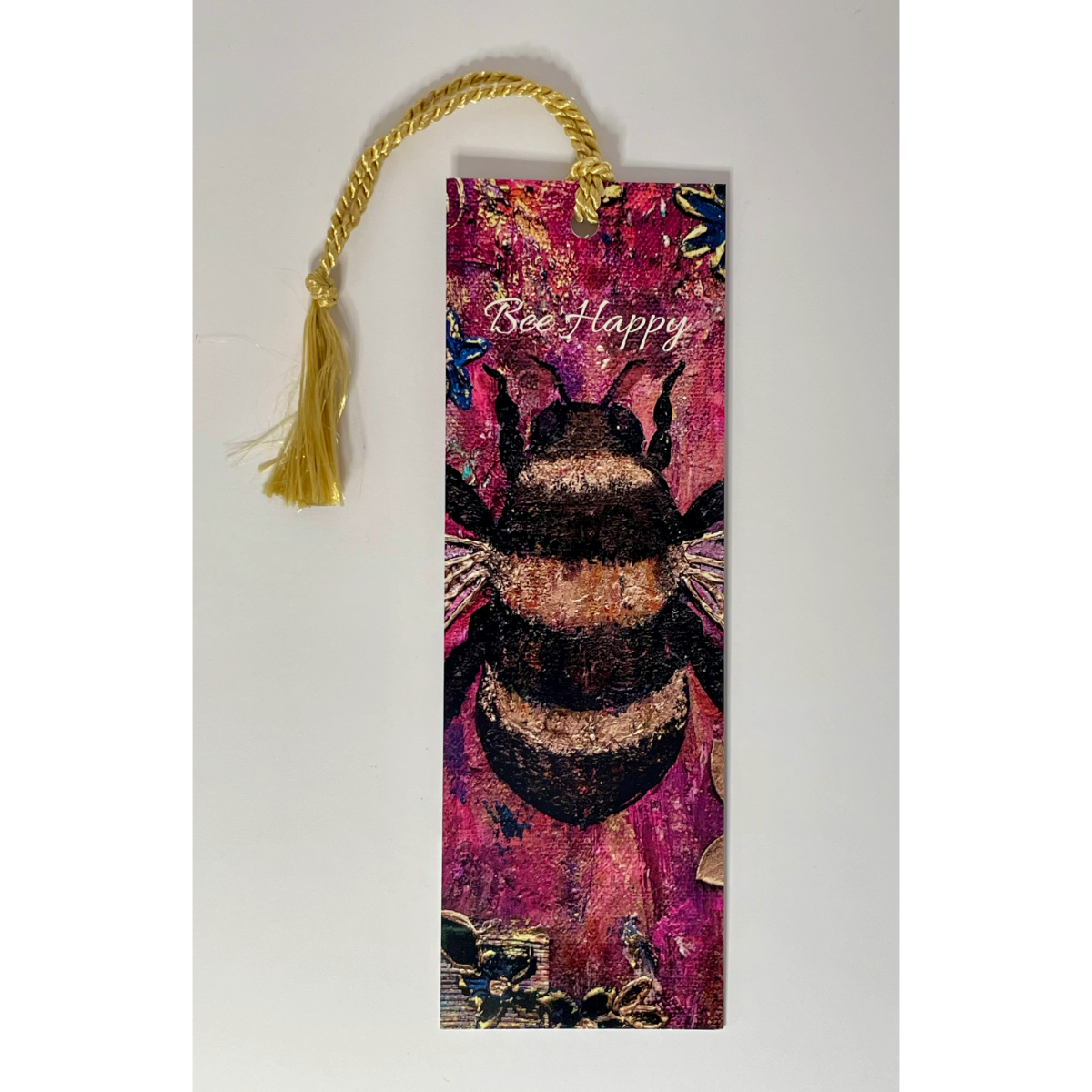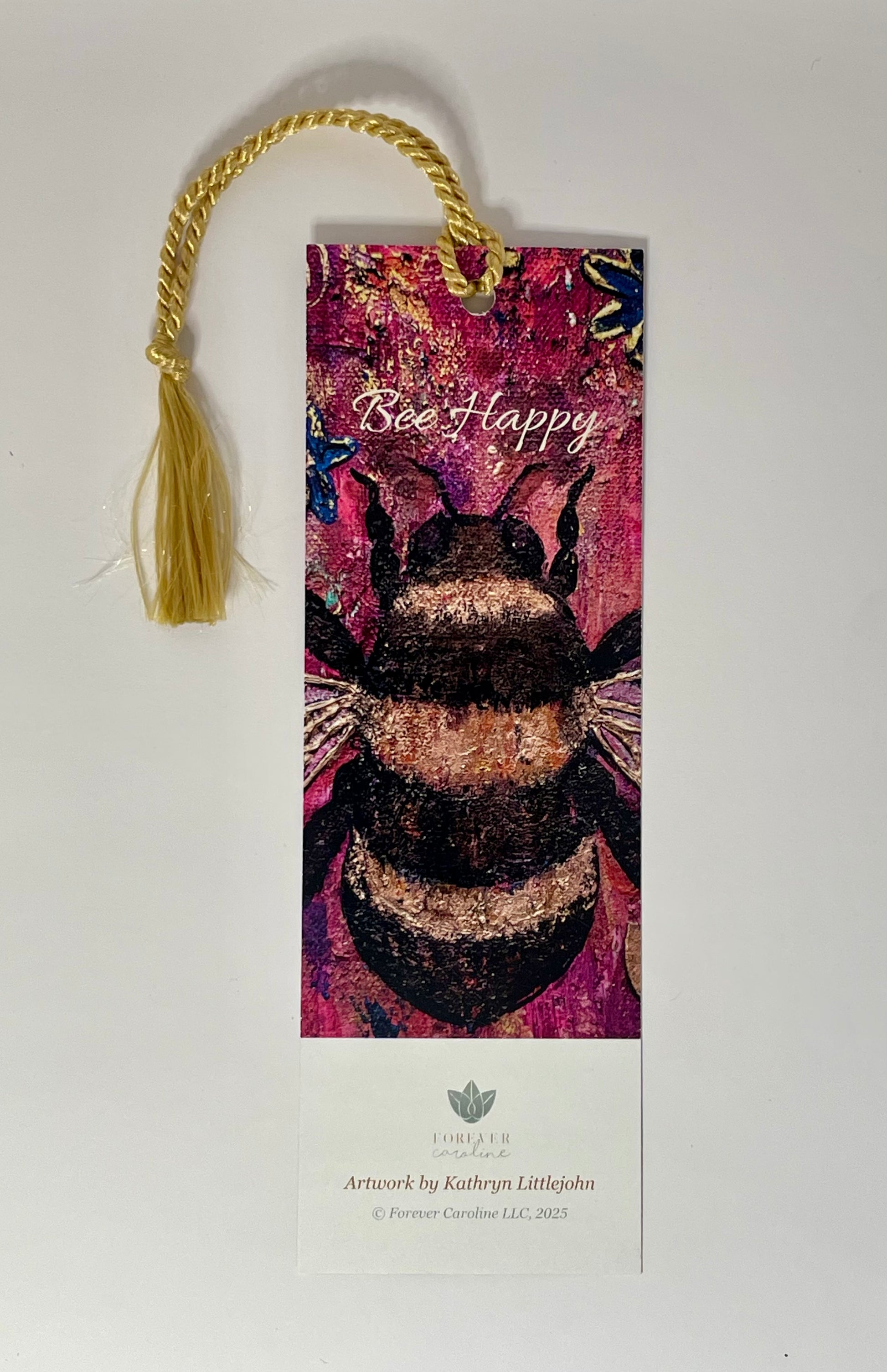 Bookmark w/ Bee Artwork & "Bee Happy" Message | Double-Sided w/ Tassel