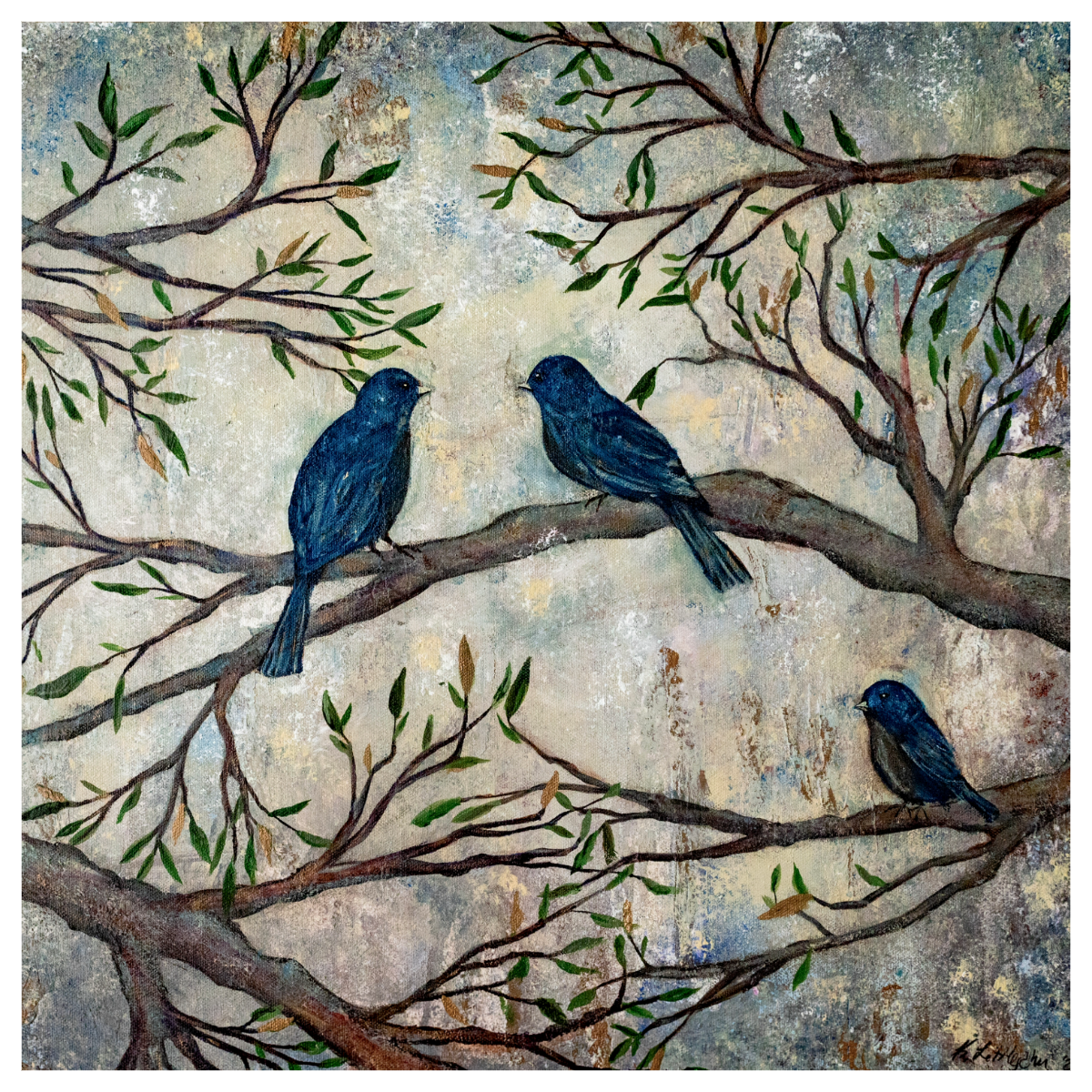 This ethereal artisan notecard features a richly detailed scene of three birds sitting amongst a setting of . charming trees and branches. Perfect for art lovers, bird enthusiasts, and anyone who appreciates elegant design.