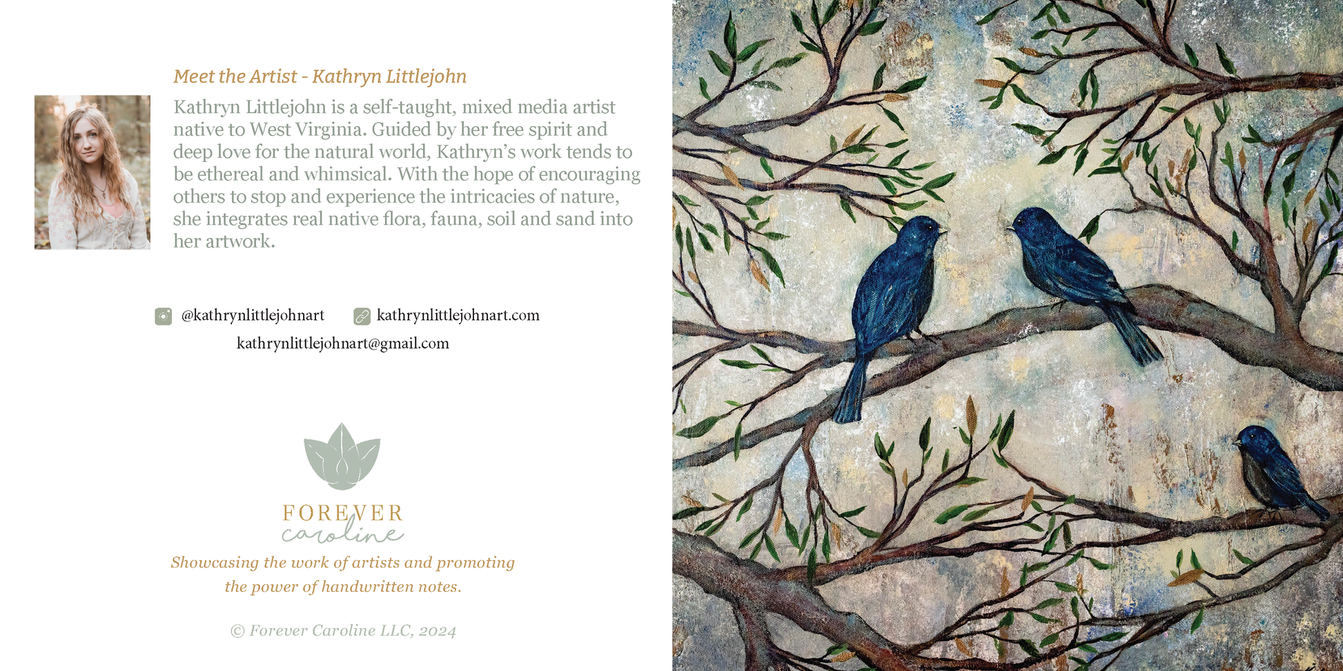 Artwork by Kathryn Littlejohn. A photo and bio of the artist are featured on the rear of the card.