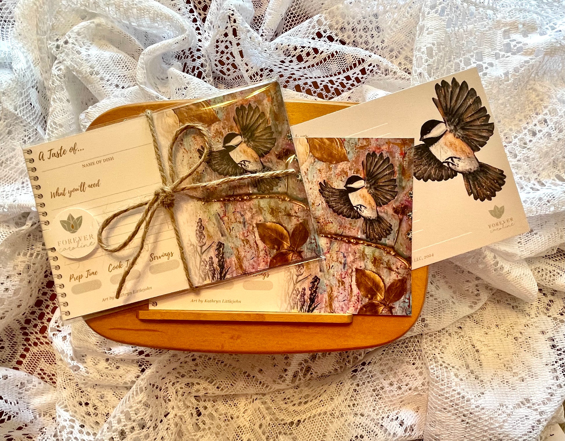 Recipe Cards Gift Set w/ Elegant Chickadee Artwork | 8 Cards