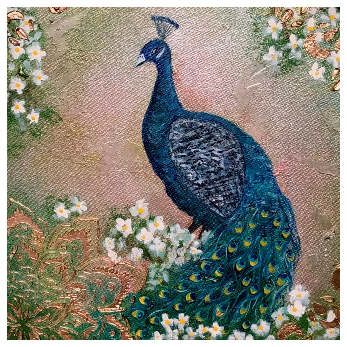 Peacock Tapestry Square All-Occasion Blank Notecard OR 4-Card Set