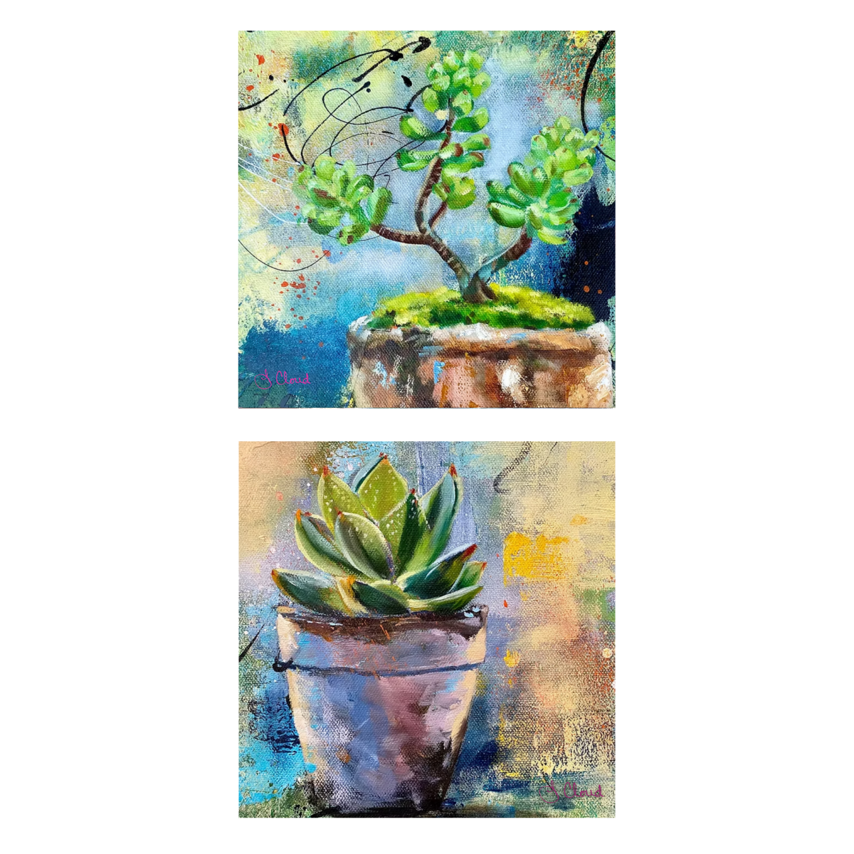 Celebrate the beauty of botanicals with this succulent art notecard set, featuring reproductions of two original mixed media paintings. Each square card showcases lush succulents in rich, layered textures—perfect for plant lovers and art enthusiasts alike.