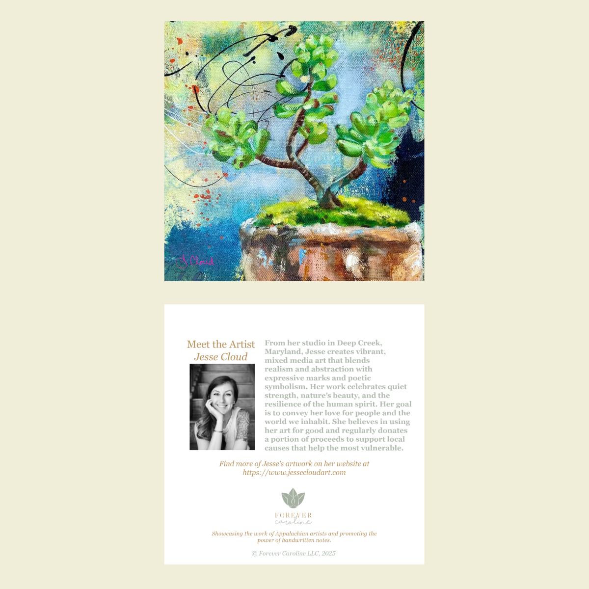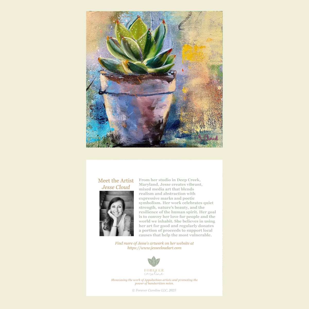 *If you like this artwork, create a gift set with our new Succulent "Love Notes" Set of 60 Tiny Cards, or create a collection from among other beautiful botanical products offered in the Blissful Blooms & Pretty Things Collection at https://forevercaroline.myshopify.com/collections/pretty-gifts-for-her