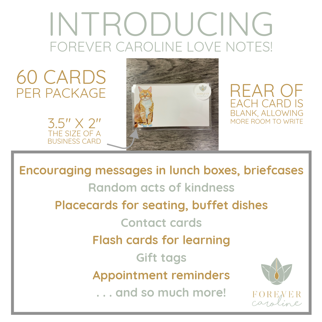 Orange Cat "Love Notes" Pack of 60 Tiny Cards