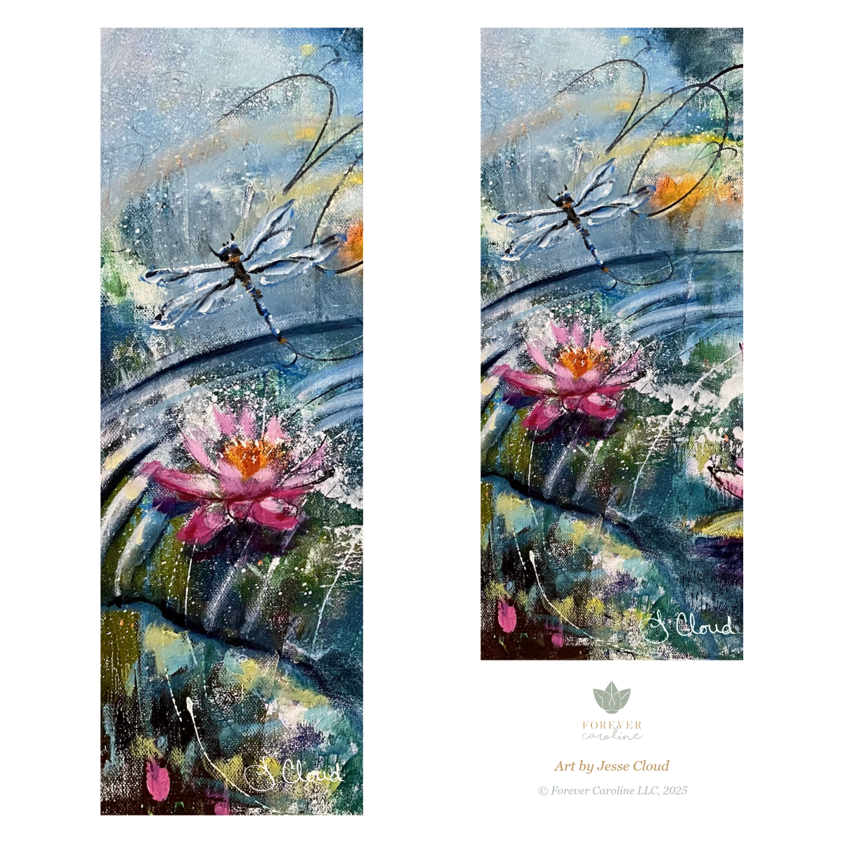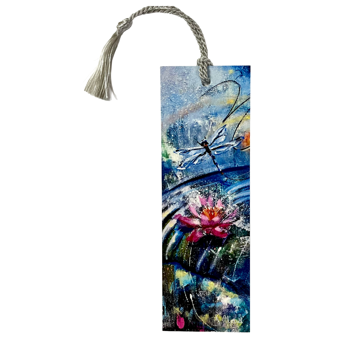 Bookmark w/ Pink Lotus and Dragonfly Artwork | Double-Sided w/ Tassel