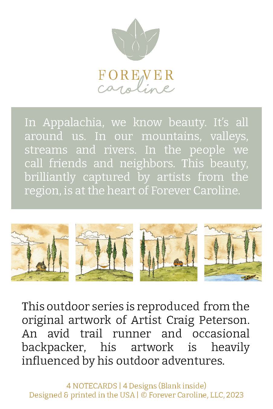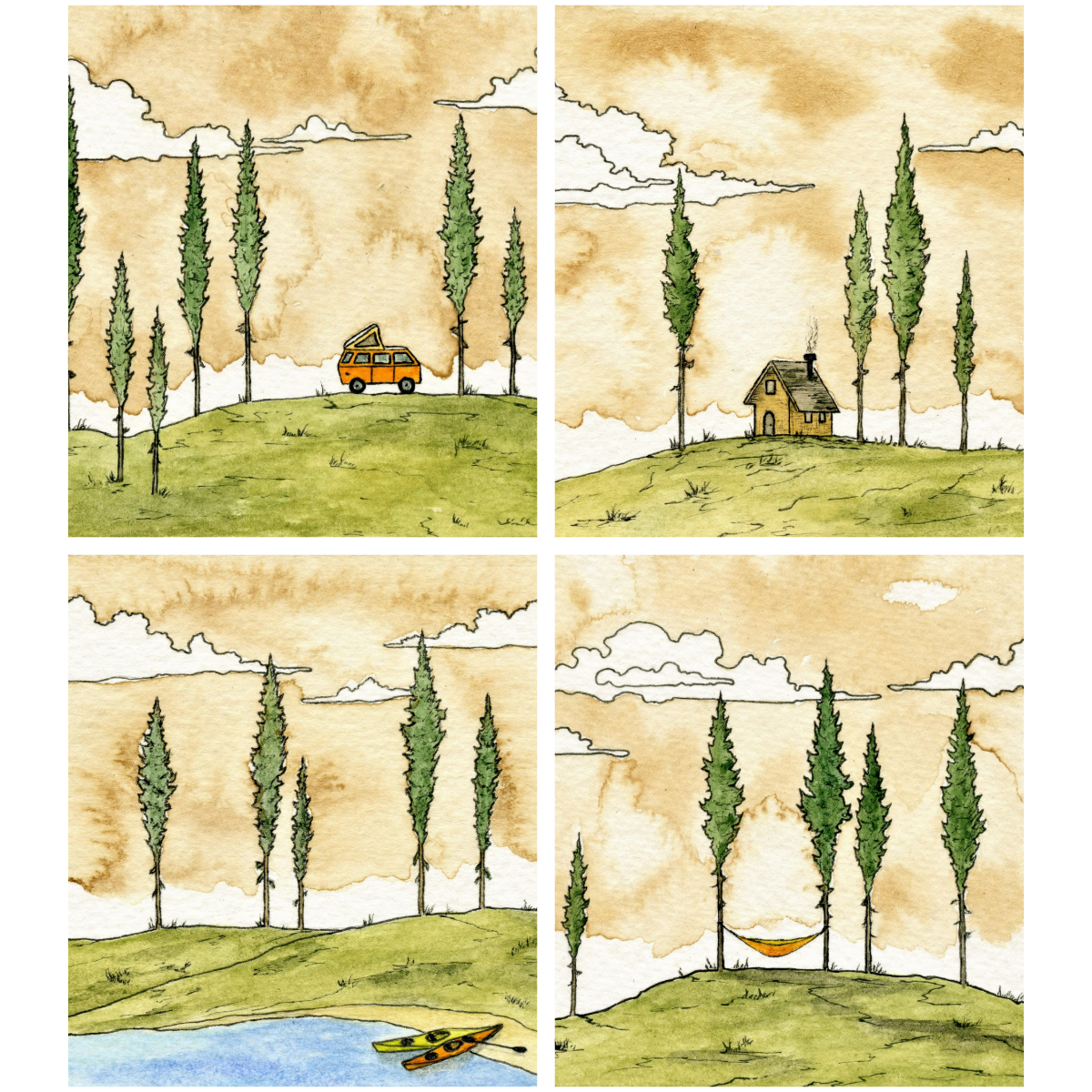 Outdoor Adventure Notecard Set | Hammock, Van, Cabin, Kayak | 4 Card Set