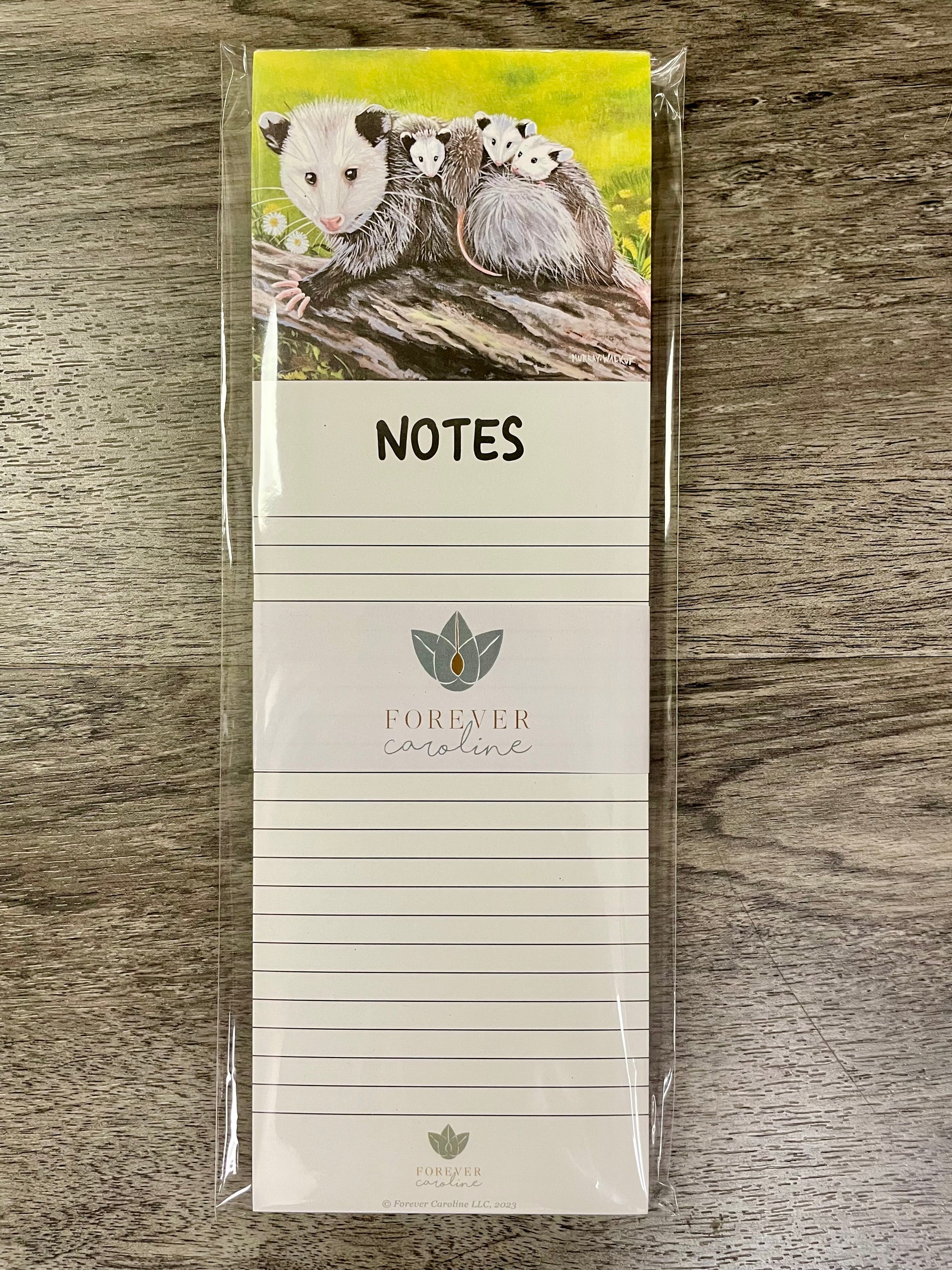 Whimsical Opossum Family Magnetic Notepad | Cute Woodlands Wildlife Tablet
