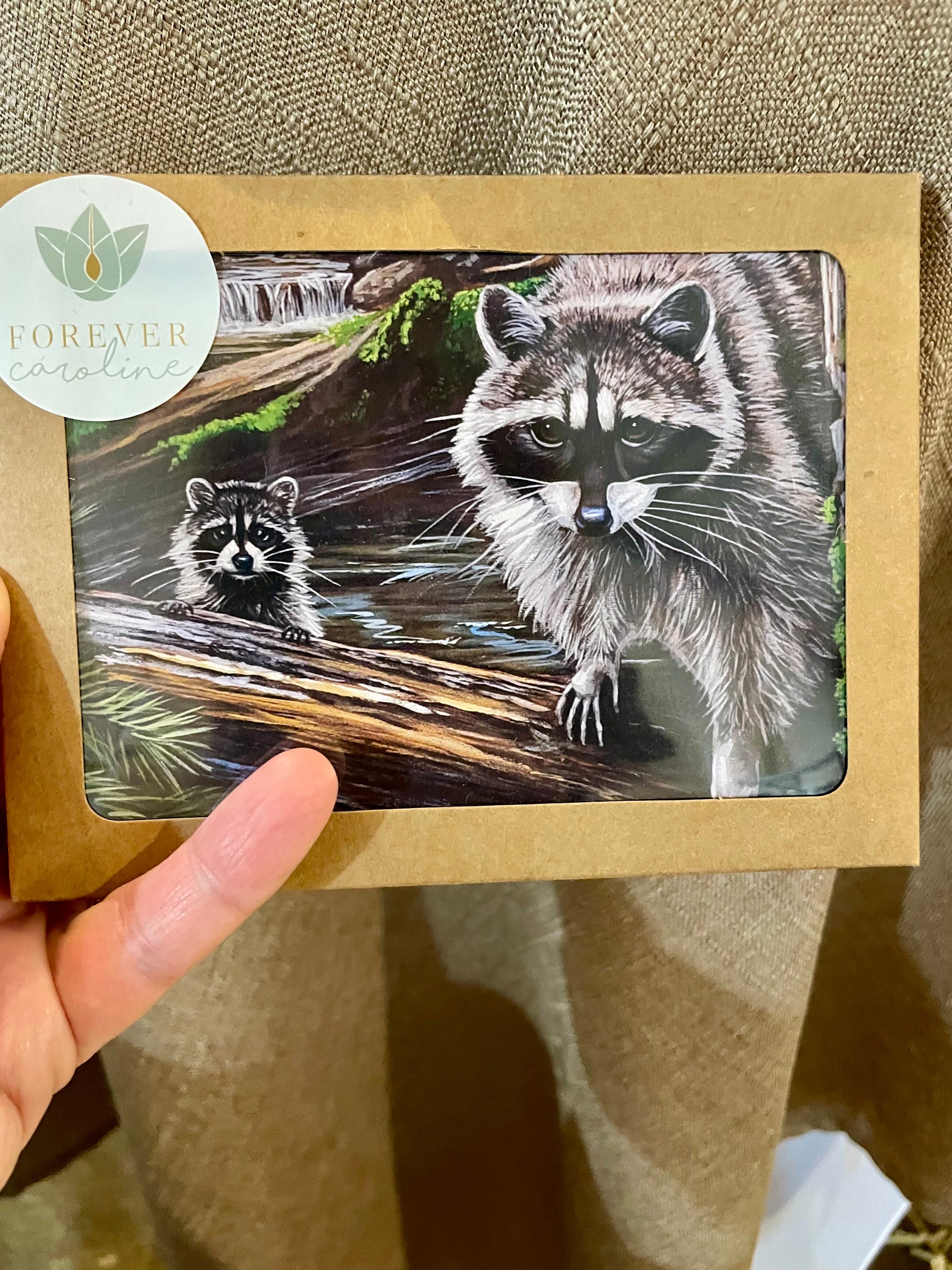 *If you like this artwork, create a gift set of coordinating Raccoon products from our Woodlands Wildlife Collection at https://forevercaroline.myshopify.com/collections/gifts-for-wildlife-lovers