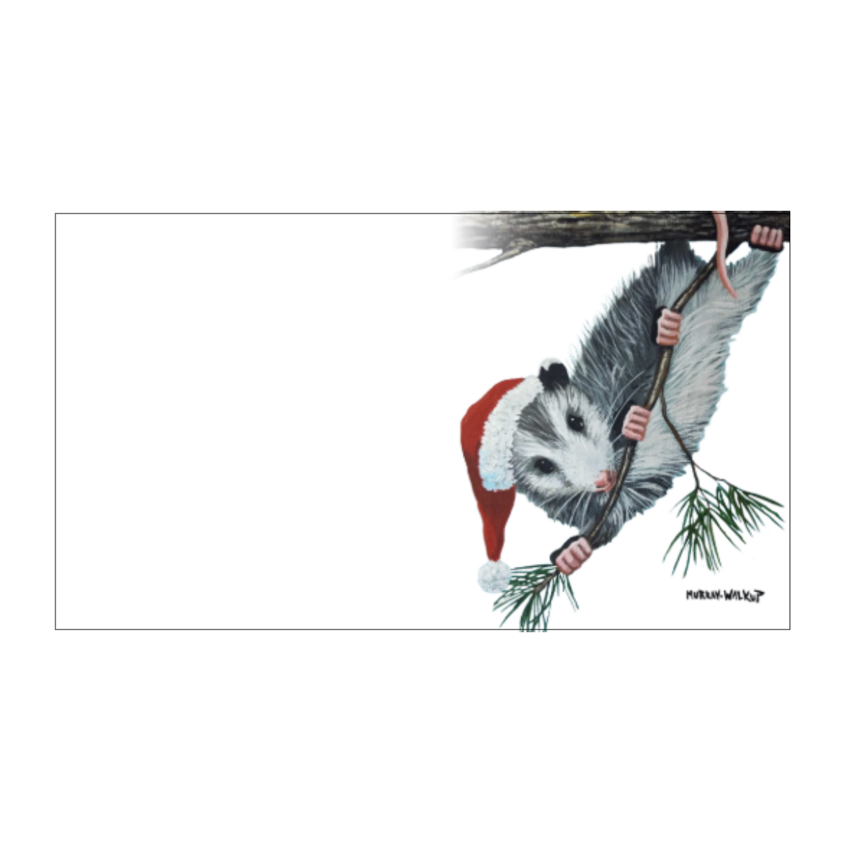 Spread holiday cheer with these beautifully illustrated miniature cards featuring a whimsical Opossum Santa hanging from a tree limb. Whether you're tucking them into gifts, using them as holiday place cards, or writing short notes of appreciation, these tiny cards will add a fun and magical touch to all your holiday activities.
