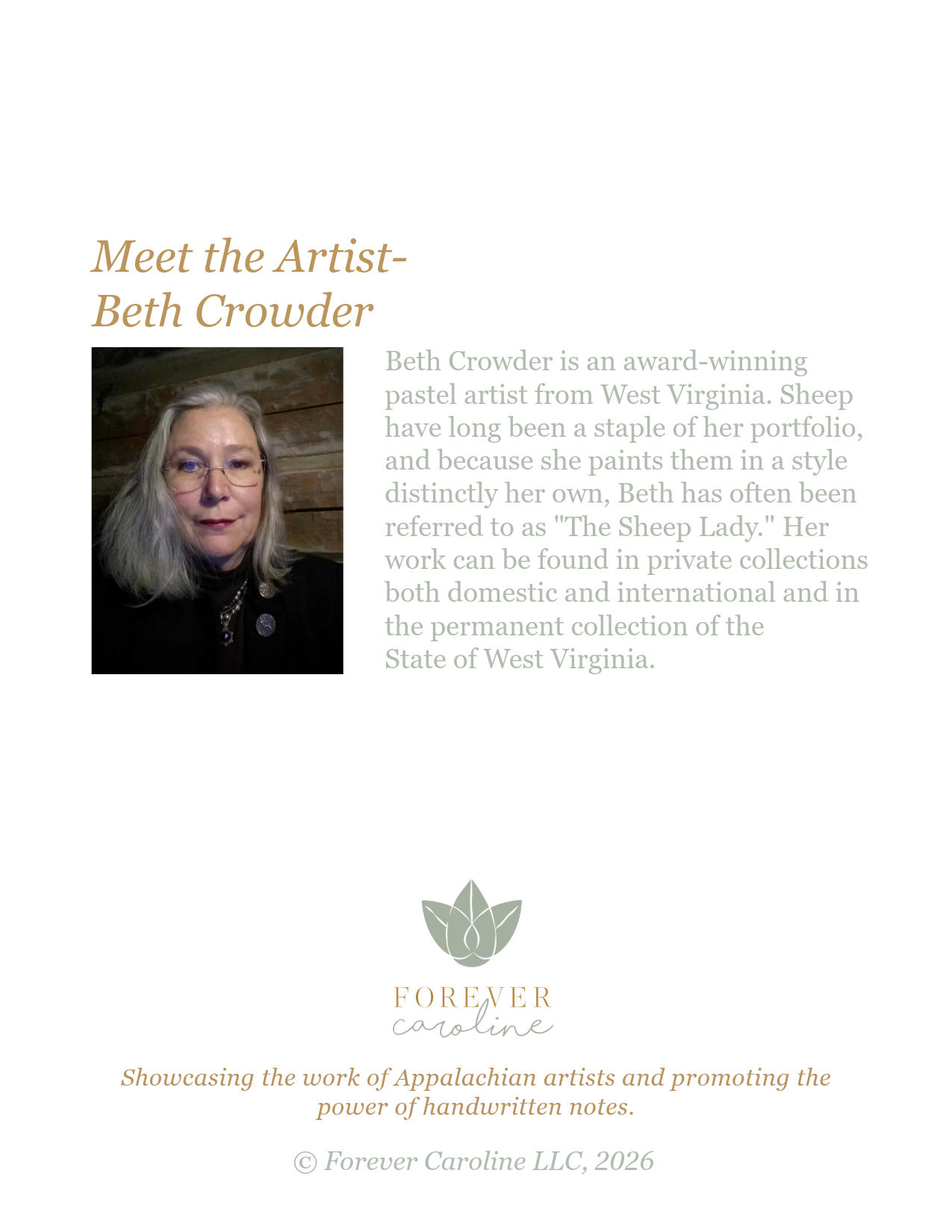 - Photo and information about the artist on the rear of the card. Inside of card is blank, allowing more room for your own personal message.